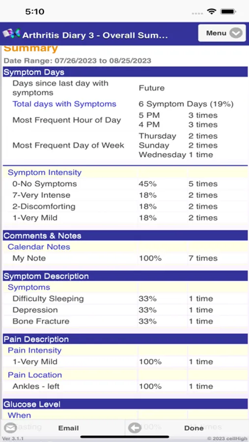 - Graph your patterns of experiences, email reports, including graphical attachments to your doctor so that they can help you adjust.