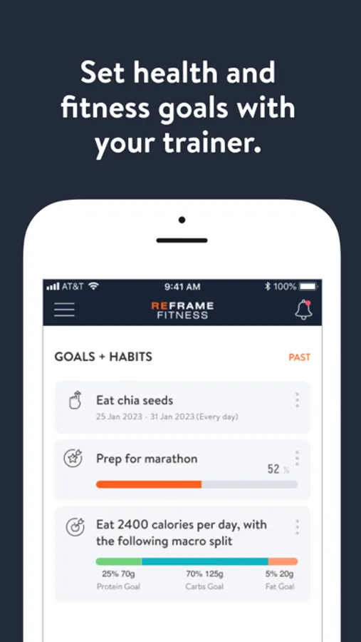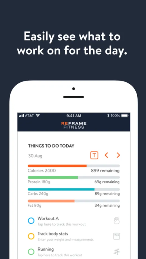 With the Reframe Fitness App, you will have access to workout programs designed specifically to help you reach your fitness and health goals! You can follow & track your workouts, your nutrition, your lifestyle habits, measurements and results–all with the help of your coach.