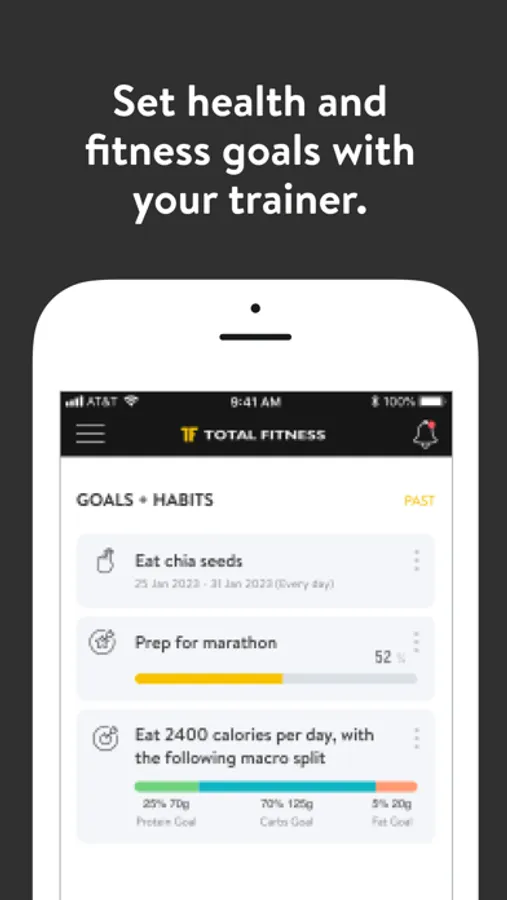 With the Total Fitness Covington App, you can start tracking your workouts and meals, measuring results, and achieving your fitness goals, all with the help of your personal trainer.