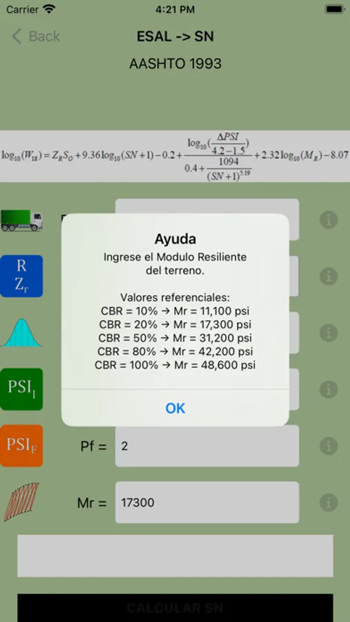 Aplicación móvil para el cálculo directo del Número Estructural (SN) según el Método AASHTO 1993.