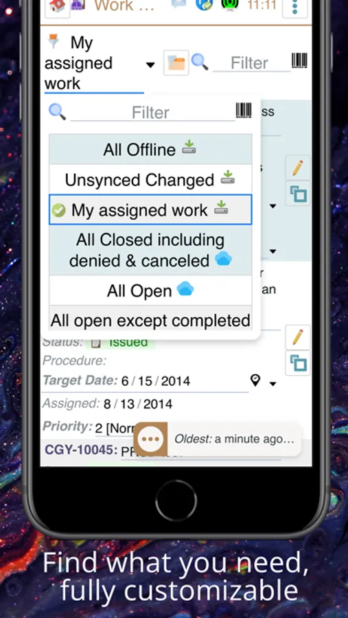 MCe (MCEverywhere, Maintenance Connection Everywhere) brings the best of offline and online experience. You can take work orders from creation to close all while offline & upon gaining connection, your changes will be synchronized to the server & changes others have made get downloaded to your device. If you only have a brief connection as you are traveling from one location to another, saving your changes are prioritized & take only seconds.