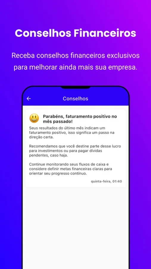 - Fornece conselhos financeiros para aumentar seu faturamento