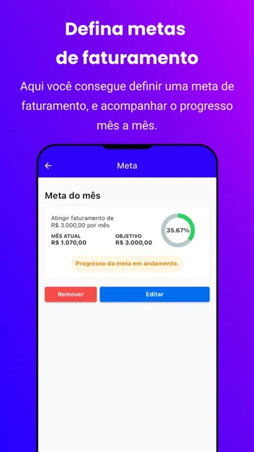 - Ajuda você a definir metas de faturamento e acompanha-las