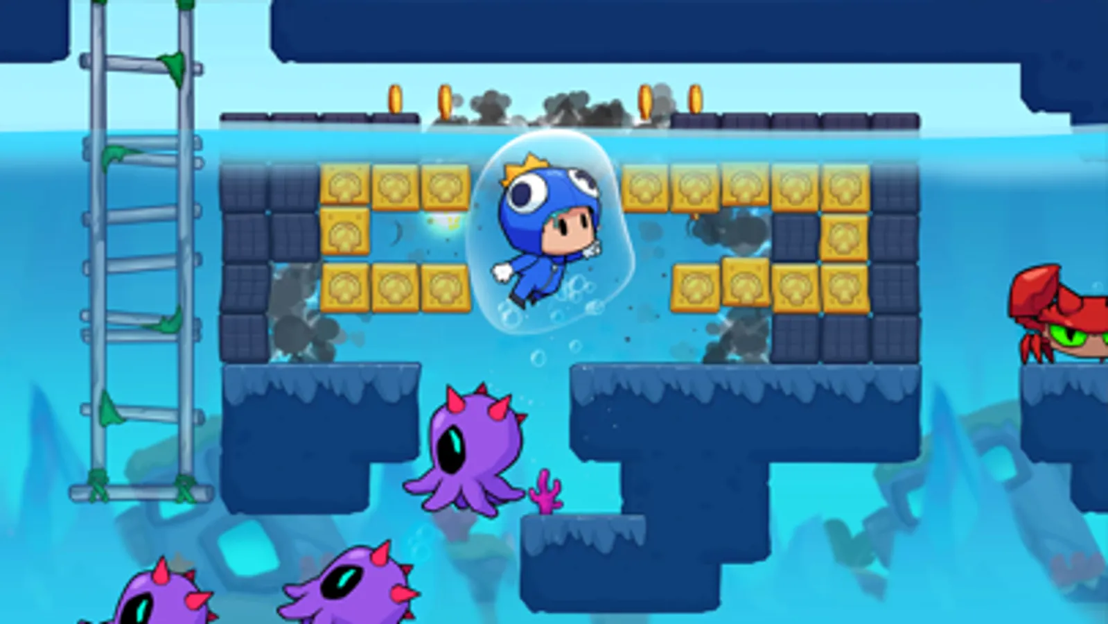 If you come looking for a game in the platform genre, give it a try for Rub Adventure as it is definitely a funny challenge for you. Jump and Run, Jump and Run through 200 awesomely spectacular places in every level to find the chest of gold. Try not to bump into the beastly enemies and easily kill them by making high jumps over their heads . Use your smooth, easy moves to guide Meno on his adventure and nothing can stop him from collecting all the coins