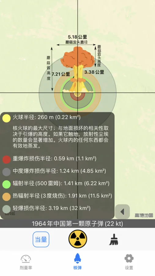 2、核弹爆炸影响范围,包括不同辐射半径内辐射水平,可能对疏散有用;