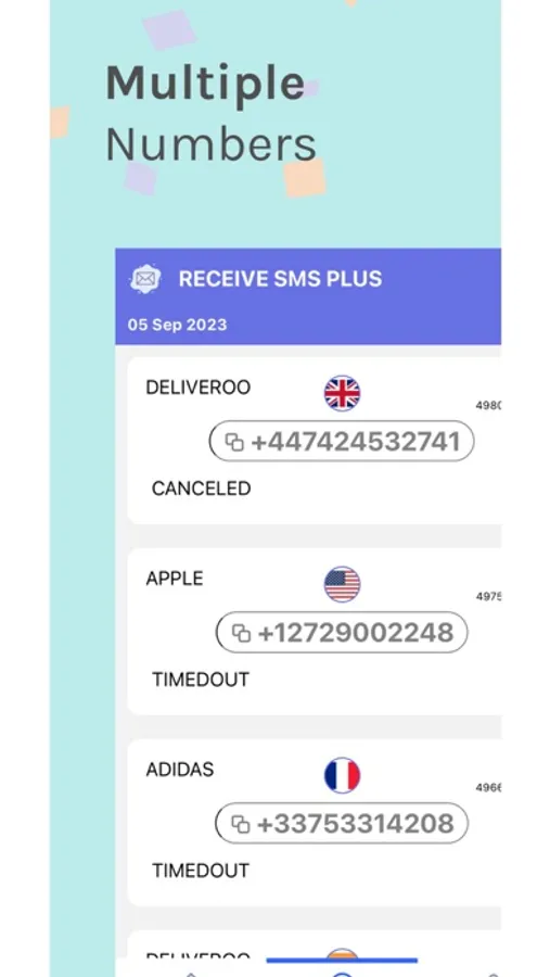 With this app, you can select international phone numbers to receive SMS messages for verification purposes. Includes options for multiple countries and message history.