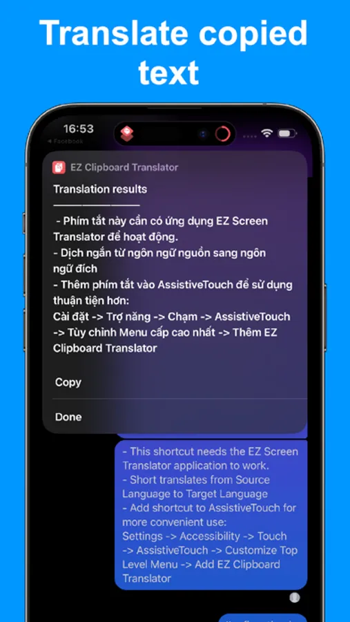 It helps you quickly translate chat messages, translate posts and comments on social networking apps, translate games, comics and foreign language documents, translate shopping apps that do not support your native language.