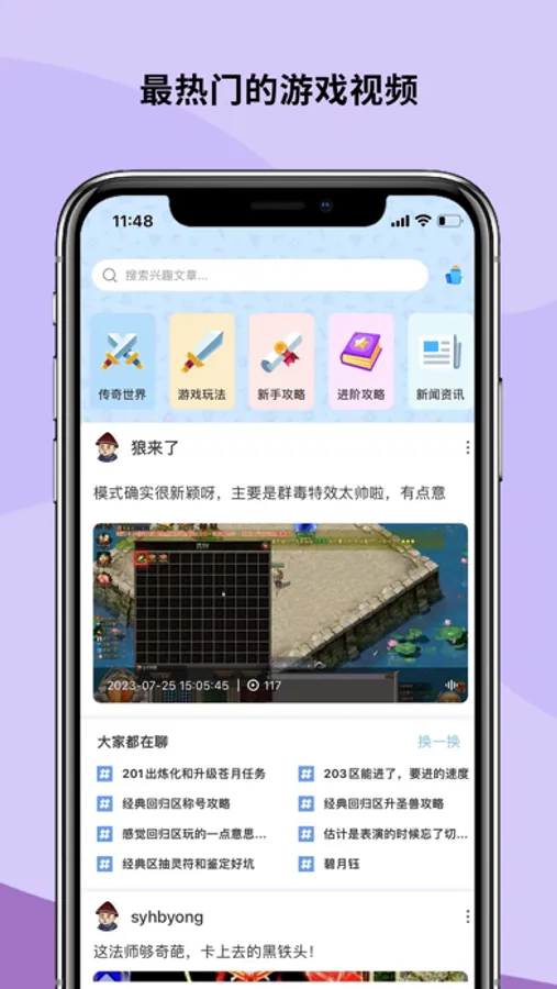 996传奇视频秀是为广大热爱传奇游戏的玩家提供优质高清游戏短视频的APP。在这里你可以与创作达人和爱好者沟通交流,参与话题讨论;在众多游戏视频中搜索灵感,寻找创意