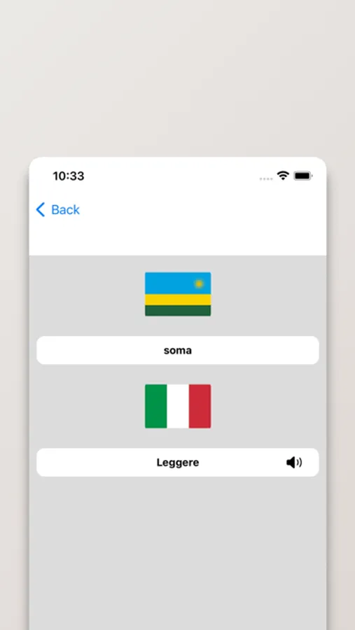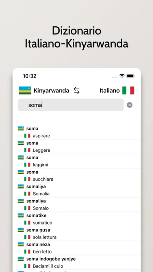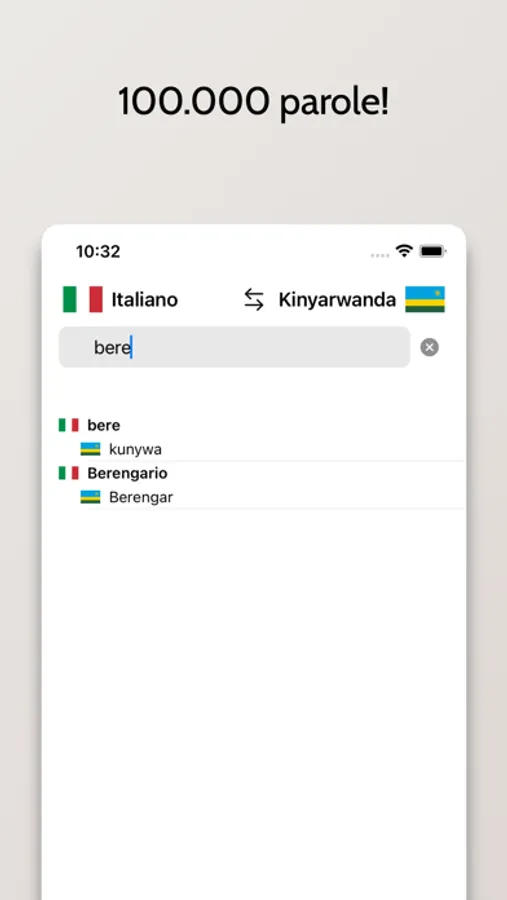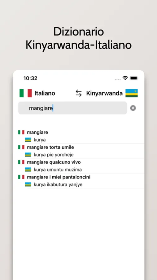 - Possibilità di cercare a partire da parole in Italiano o Kinyarwanda