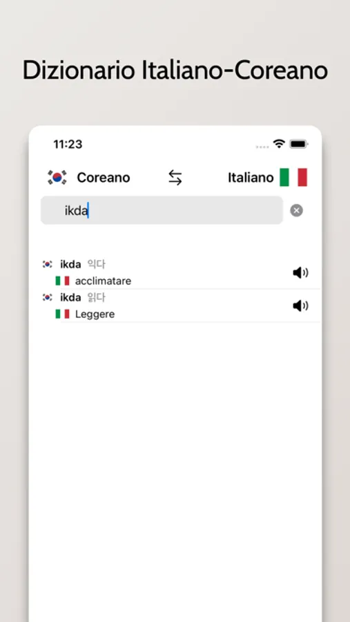 - Possibilità di cercare a partire da parole in Italiano o Coreano