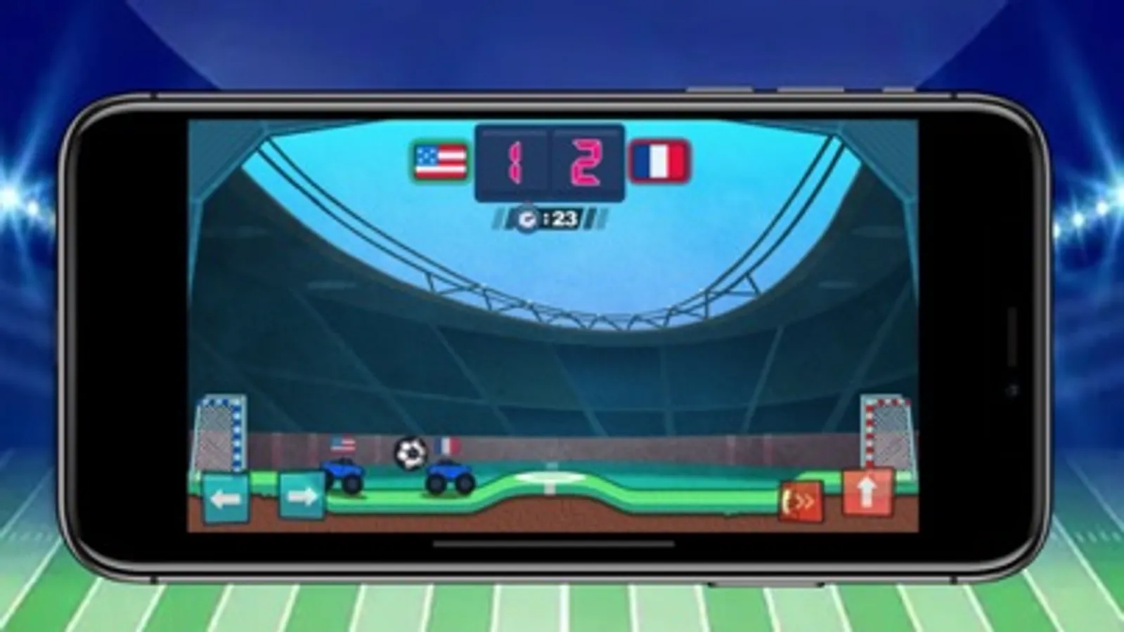 Wählen Sie Ihr Team und versuchen Sie, sie zum Sieg in Monster Truck Soccer zu führen! Fahre hin und her und schlage den Fußball in Richtung deines Tores. Verteidige dich gegen deinen Gegner, während du versuchst, den KI-Gegner in jedem 60-Sekunden-Spiel zu übertreffen. Sie verdienen Kronen, wenn Sie ein Spiel gewinnen.