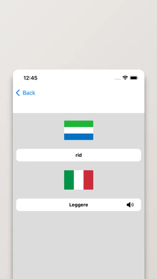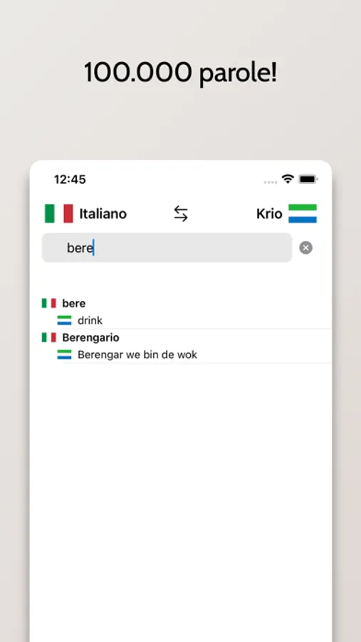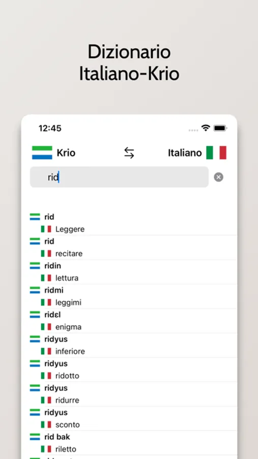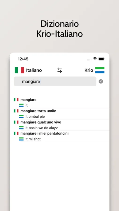 - Possibilità di cercare a partire da parole in Italiano o Krio
