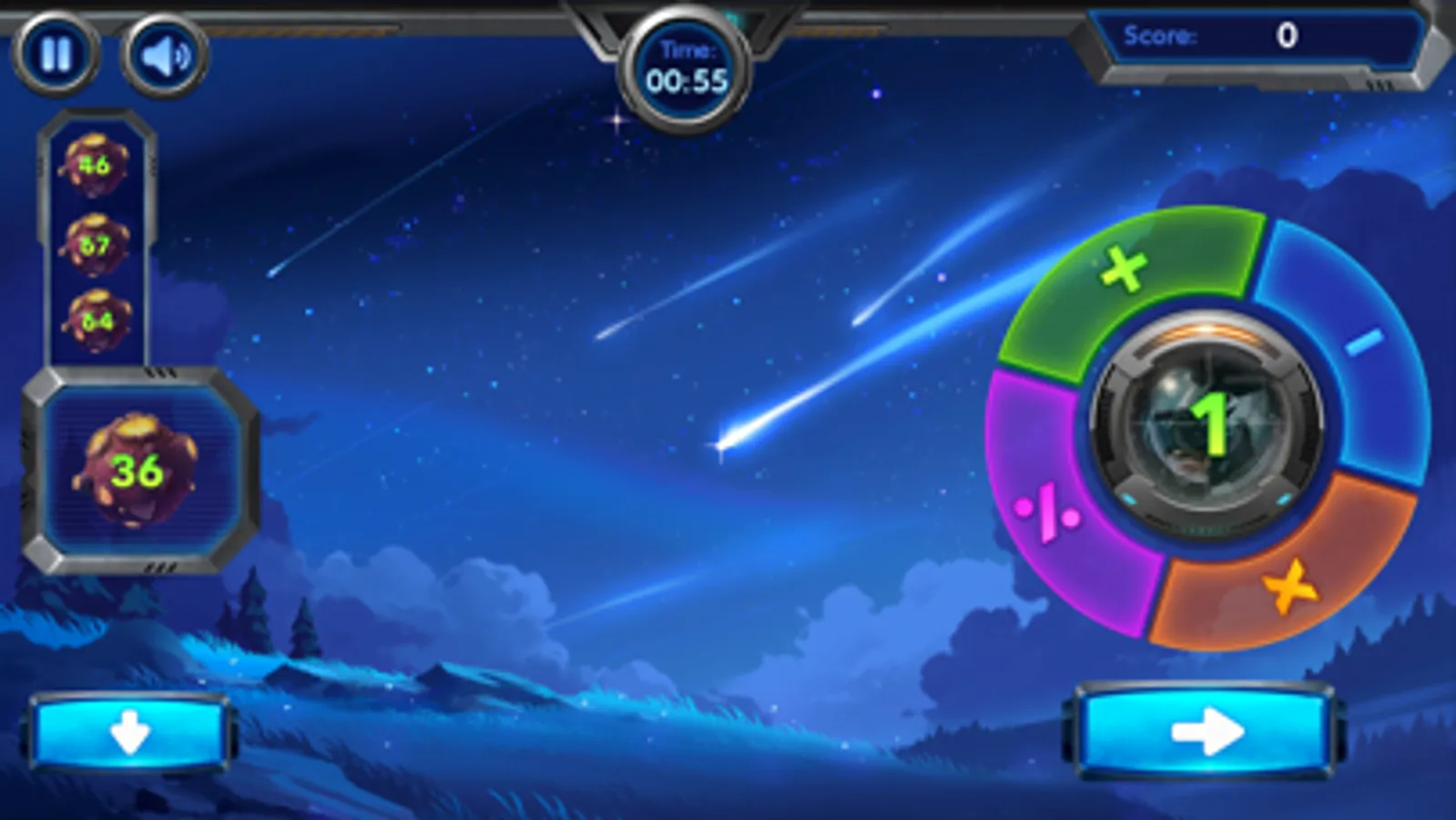 Your goal in DonVip Play No Hu Puzzle is to propel asteroids towards the UFO on the right, each asteroid carrying a random value from -99 to 99. The UFO features a constant number and is surrounded by the four main arithmetic operations: addition, subtraction, multiplication, and division. When an asteroid hits the UFO, the operation is chosen based on the UFO's side it hits. The resulting calculation, involving the asteroid's value, UFO's number, and the operation, adds to your score. Attain positive scores five times in a row to earn extra playtime, allowing you to gather more points.