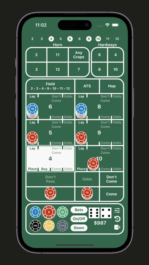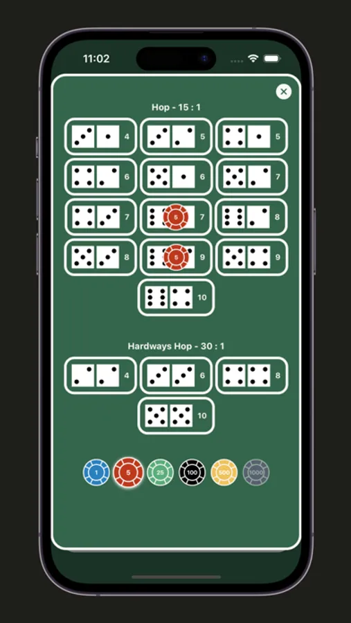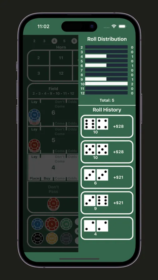 Step into the world of craps with a single-player simulated game. Roll the dice, place bets, and track your roll history as you enjoy the craps experience right on your device.