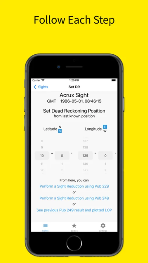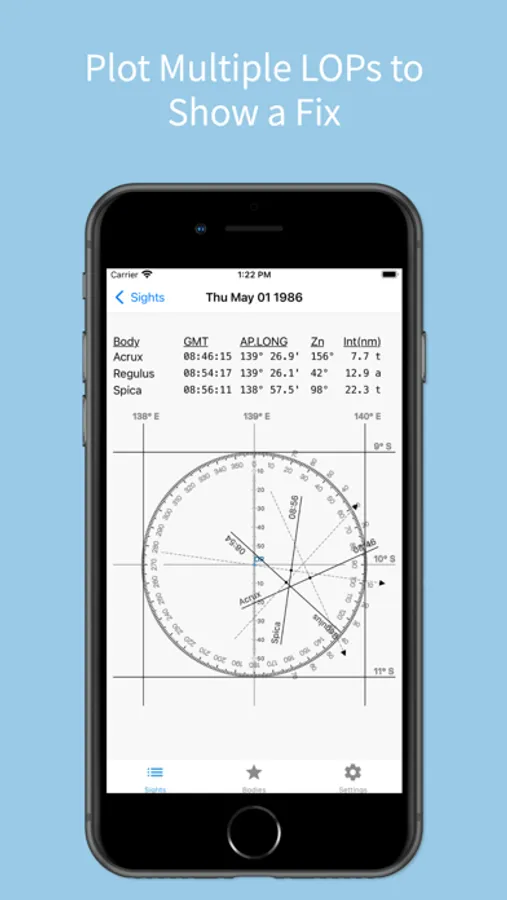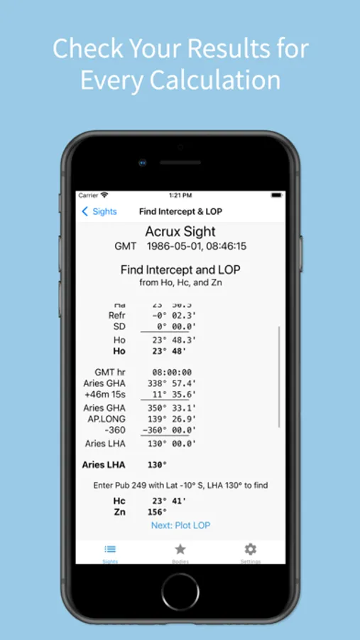 Star Pupil sharpens your traditional Celestial Navigation skills by showing each calculation and each step along the way for performing a Sight Reduction and plotting a Line of Position.
