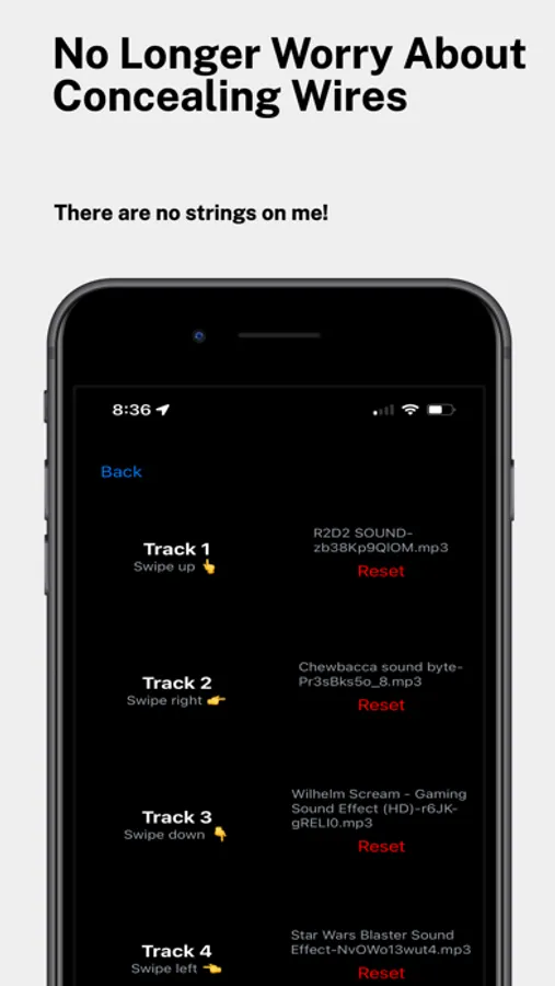 Just download your sound files to your device and trigger them using discrete, wireless Bluetooth buttons.