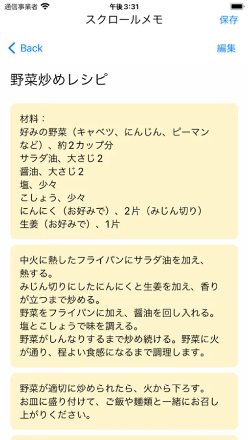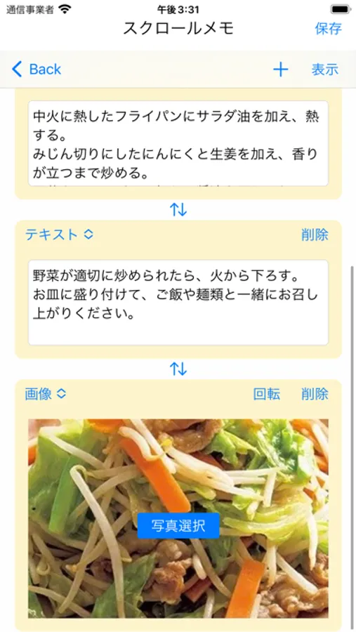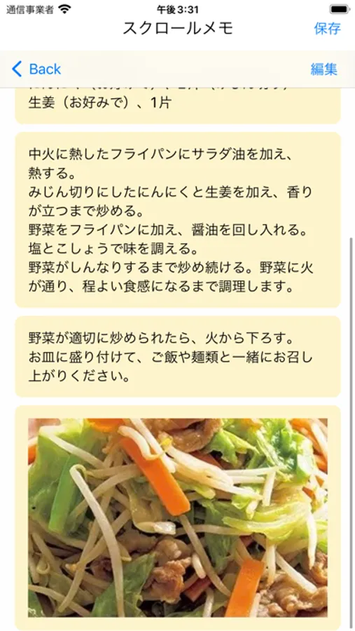 メモと画像をスクロールして確認できるメモアプリ!マニュアルやレシピ作成におすすめ、単純なメモとしても使用可能。