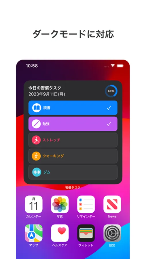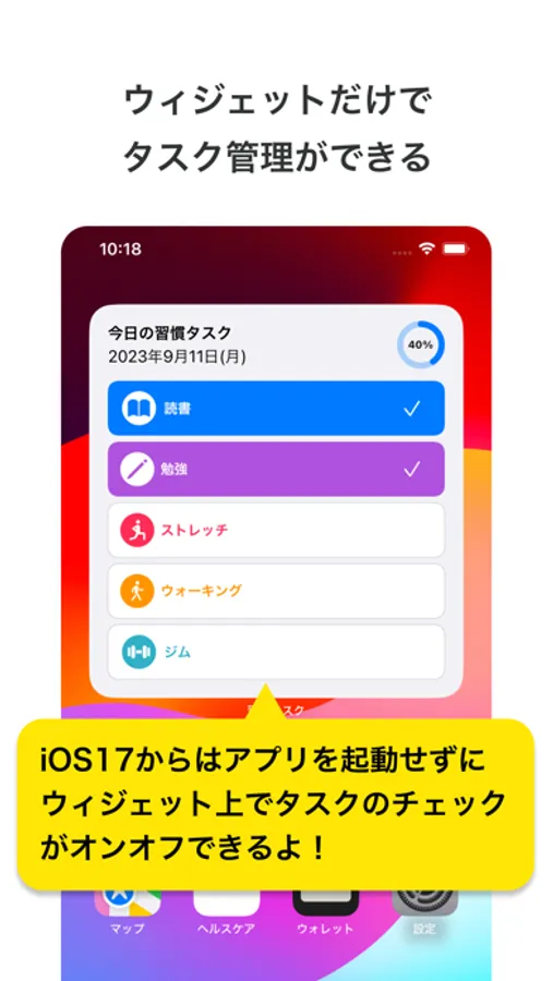 iOS17からはウィジェット上でチェックが行えるようになり、アプリを起動する必要も無くなりました。