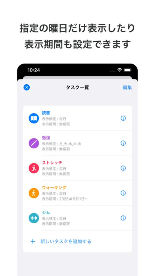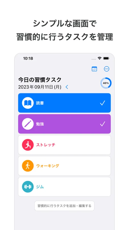 「習慣タスク」を使えば習慣的に行なっているタスクを毎日忘れず行えるようになります。
