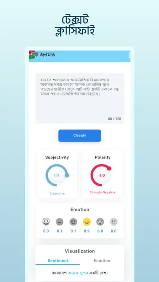 To determine the underlying sentiment of a text, the user needs to give a text input, which can either be a sentence or a paragraph but the text must be in bangla and within a given limit.