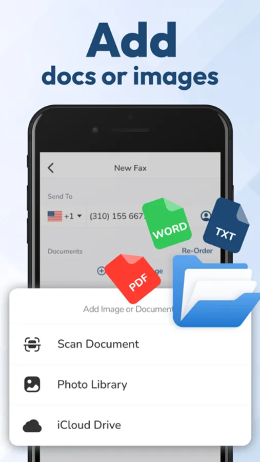 Scan documents effortlessly with our built-in advanced scanner, ensuring clear, professional faxes. Add images from your album or use your phone's camera to send faxes with just a few taps. Plus, you can receive faxes anytime, anywhere with your own fax number.