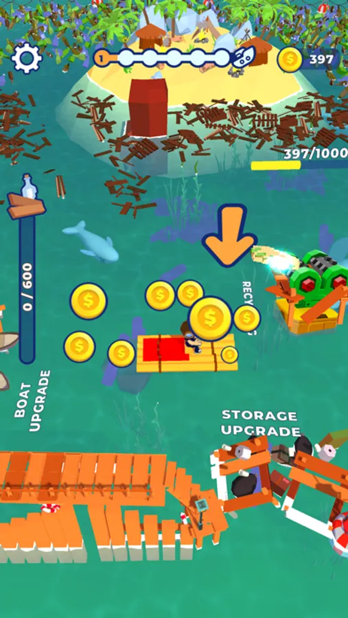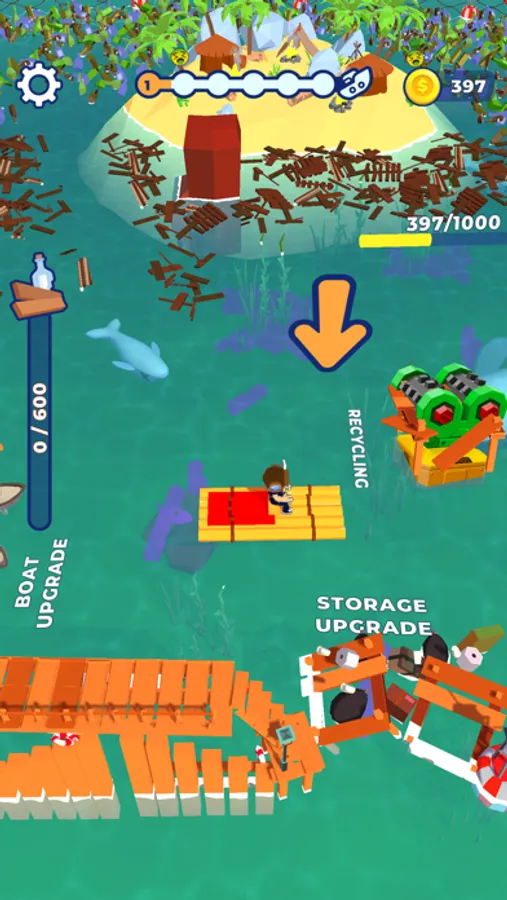 Collect floating junk on the surface to send later for recycling. Use your money to improve your boat's speed and carrying capacity. Help out people in trouble, who will gladly agree to be your helpers as a thank-you for their rescue. There will be a scale at the top that, when filled, will allow you to move on to the next stage. Unlock access to incredible new locations and develop your floating town. Thanks to this game, you can relax and have a great time!