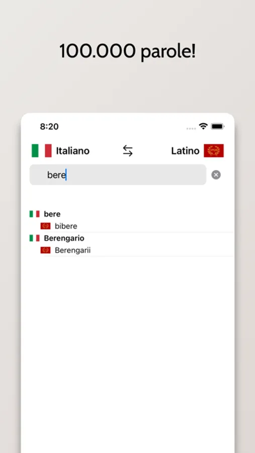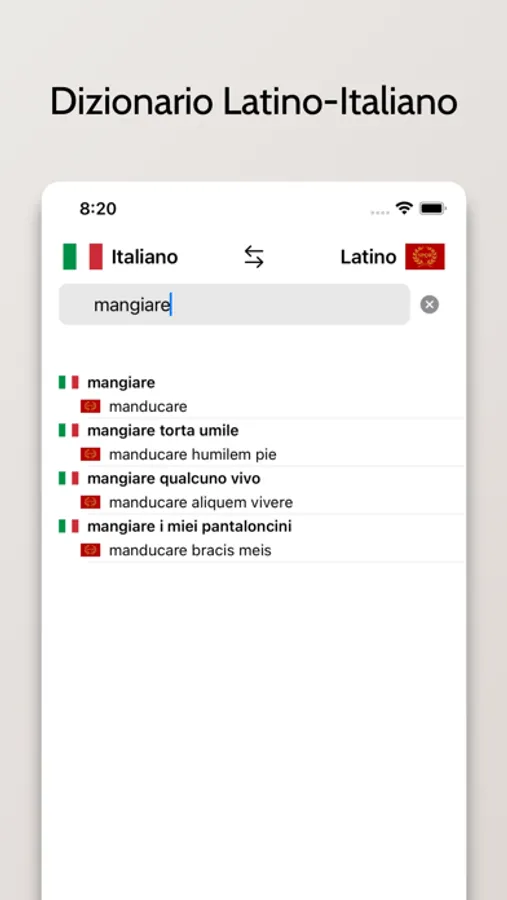 - Possibilità di cercare a partire da parole in Italiano o Latino