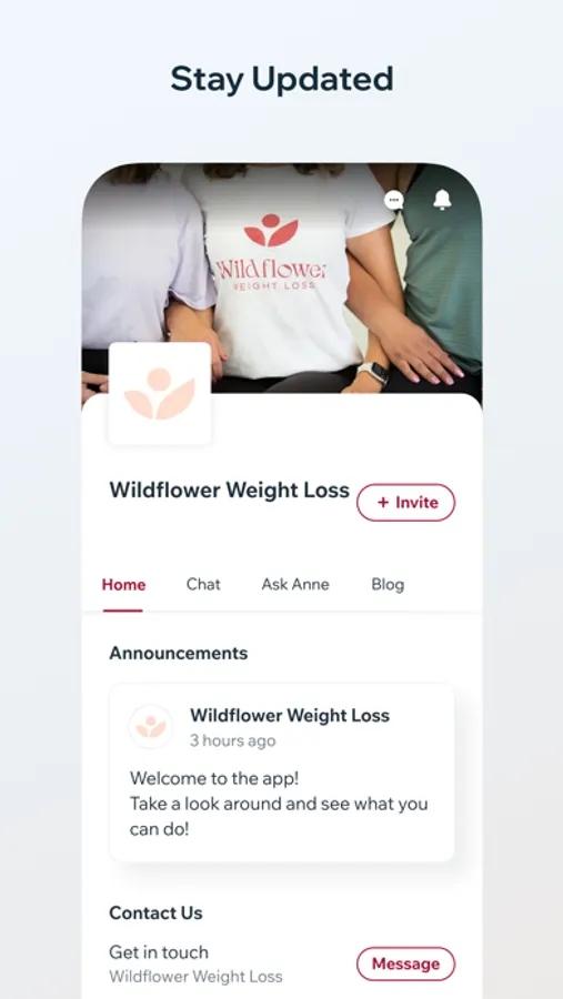 The Wildflower Weight Loss app allows "Wildflower Women" to stay up to date on weekly virtual events, build community with other Wildflower women, receive frequent encouragement and accountability, and have access to a multitude of resources.