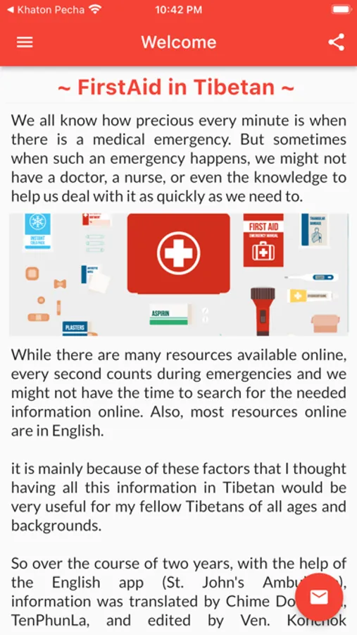 In this app, we have directly translated of all the data in the St. John's Ambulance App into easy-to-understand Tibetan for the benefit of those who find it difficult to understand medical terminology in English or those who do not read English.