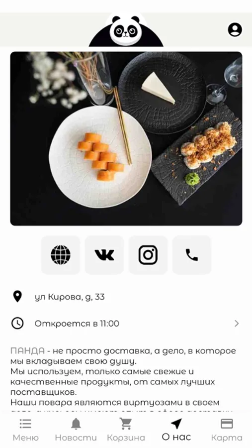 Почувствуй вкус и свежесть отборных продуктов от суши Панда. То качество которое ты искал . Сочетание и баланс вкуса. Честные роллы, быстрая доставка и океан вкуса - все это ты найдешь у нас . Готовим с любовью к своему делу . Ваша Панда
