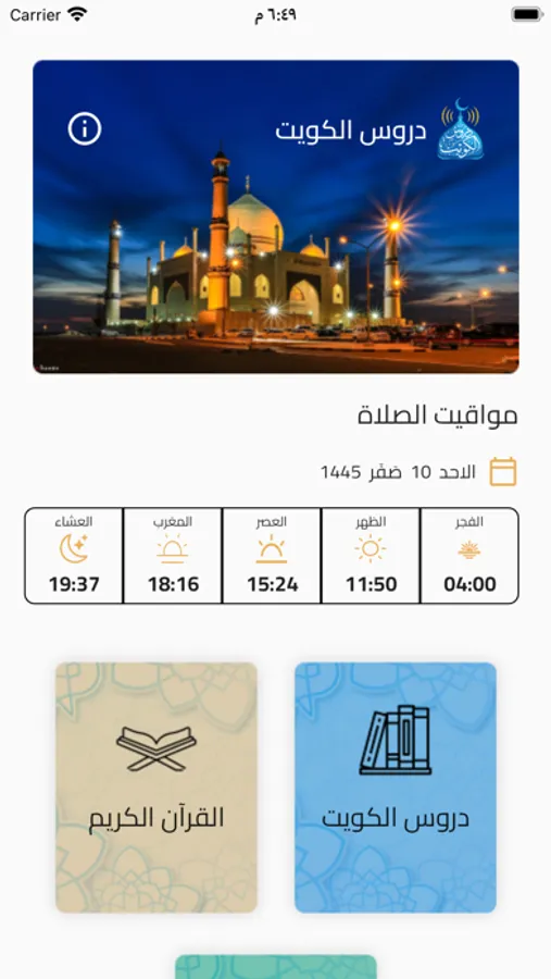 'تطبيق "دروس الكويت" هو تطبيق ديني متعدد الوظائف يهدف إلى تقديم مصادر وموارد شاملة للمسلمين. يحتوي التطبيق على مجموعة كبيرة من الدروس الدينية والخطب والمواد التعليمية المصورة والمسموعة التي يمكن للمستخدمين الاستفادة منها في تعزيز فهمهم ومعرفتهم يحتوي التطبيق على عدد من الأقسام التي تغطي مختلف جوانب الدين الإسلامي، بما في ذلك القرآن الكريم و الدروس و مواقيت الصلاة , القبلة. يمكن للمستخدمين البحث في هذه الأقسام والعثور على المواد التي يحتاجونها بسهولة',