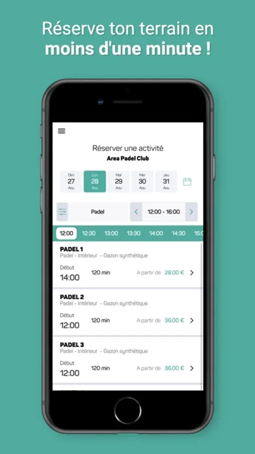 Fini la corvée de réservation ! Avec l'application tu n'as plus qu'à accéder aux créneaux disponibles et à en choisir un. Le club recevra alors automatiquement ta réservation.