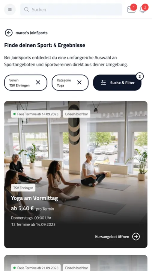 Bei uns findest du eine Vielzahl von Sportangeboten und Sportanbietern in deiner Region und kannst diese direkt online buchen.