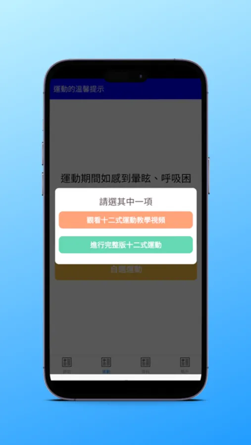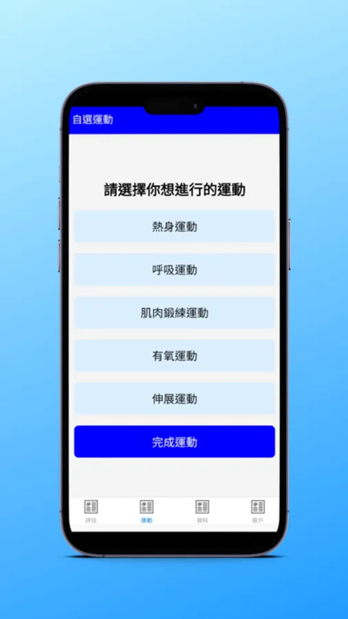 此應用程式旨為身體健康欠佳的人士,提供制定個人化的運動計劃,包括呼吸運動、肌肉強化運動和伸展運動,以提高使用者的健康水平。