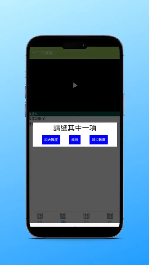 • 根據使用者的自我匯報資料及狀況,應用程式有調整推薦運動強度水平的內置功能