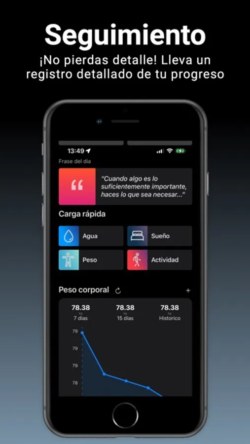 - Visualiza tus avances: Sigue tus progresiones corporales y mejoras en tus sesiones de entrenamiento.