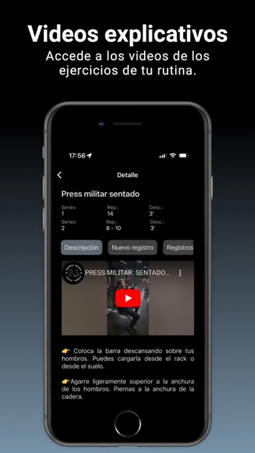 - Biblioteca de vídeos: Aprende la ejecución correcta de cada ejercicio en tu pauta de entrenamiento.