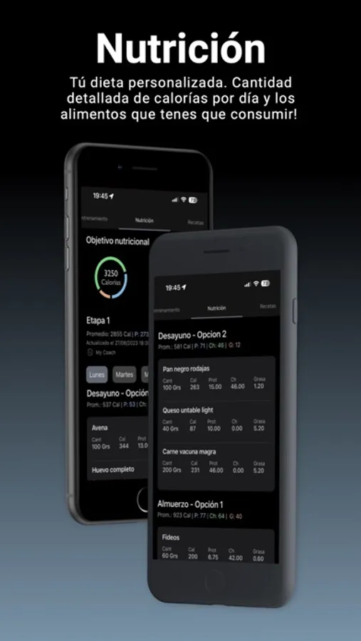 - Pauta de nutrición personalizada: Alimenta tu cuerpo de la manera adecuada según tus requerimientos calóricos y una distribución de macronutrientes óptima que acompañe tus objetivos.