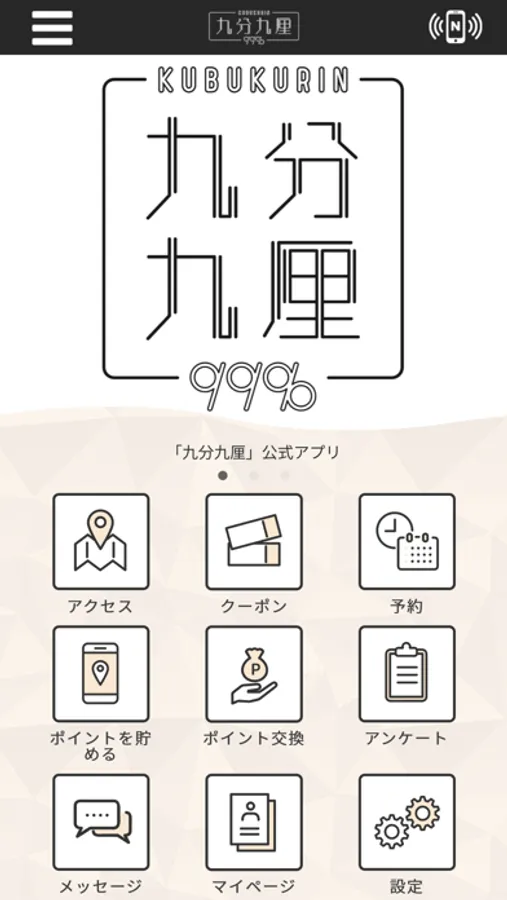 このアプリでは、九分九厘の最新情報の受け取りや便利な機能を使う事ができます。