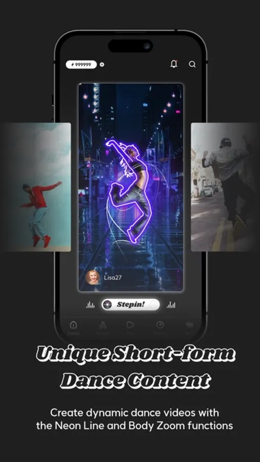 - STEPIN’s Neon Dance feature illustrates your dance moves with a neon figure while blocking out the video background, your face and body.
