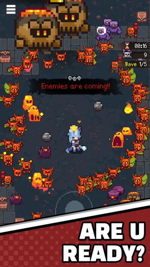 'Cat Girl Survival' is a high-quality pixel art game that combines bullet hell, action, and rogue-like elements.