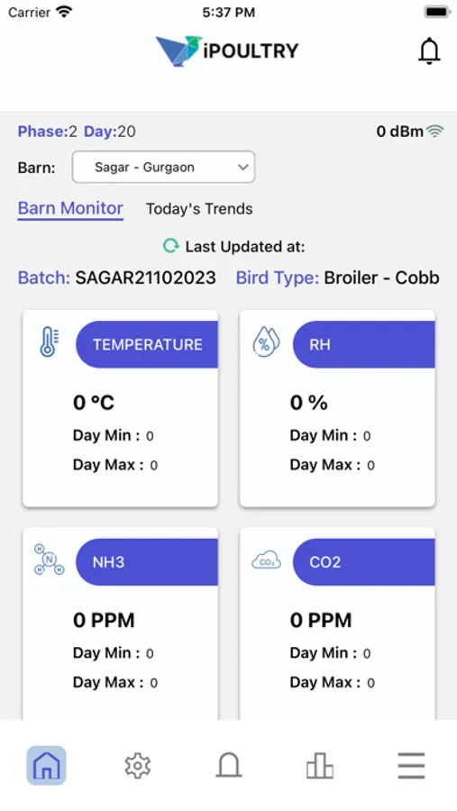 •A dashboard that displays the trend of the four parameters ( temp, Humidity, carbon dioxide & Ammonia)