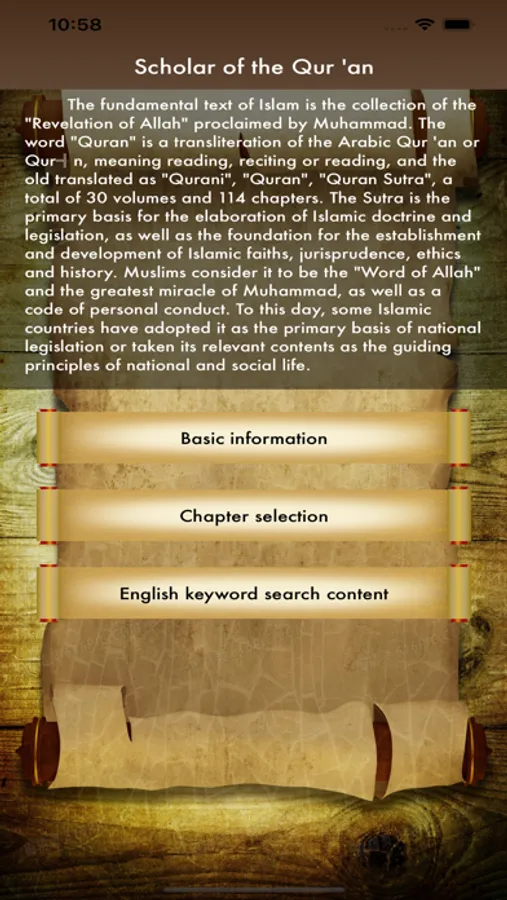 The Quran is the only fundamental text of Islam, our APP provides all the content of the Quran, users can enter the chapter code, we will give you feedback about the content of the chapter. You can also search the Quran by typing in English keywords.