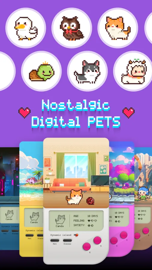 Nostalgic Digital Pet, your digital pet in your pocket. Take care of your little friends, make sure they eat well and grow up!