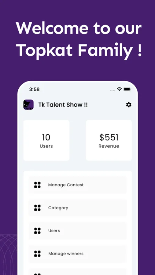 Administer Users On The TK Talent Show App. Including: Categories, Users, Community/The Kat Lounge, Winners, Subscriptions and Ads.