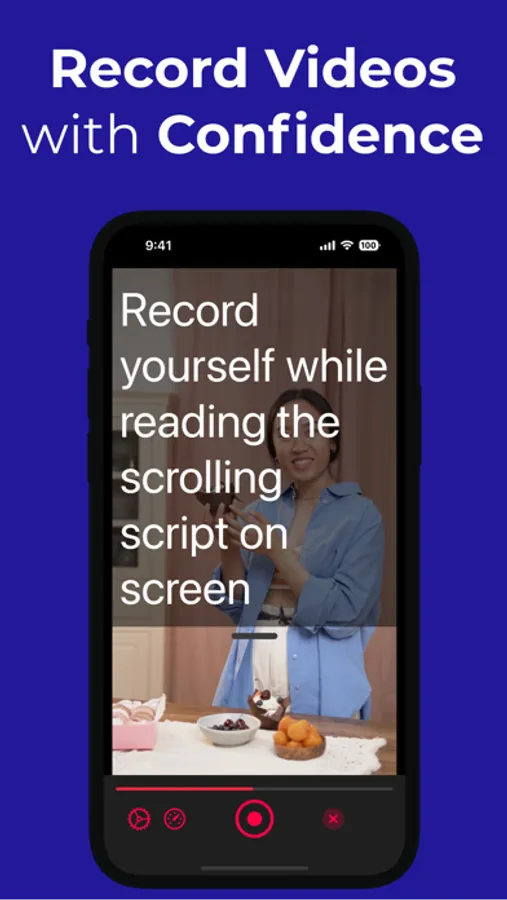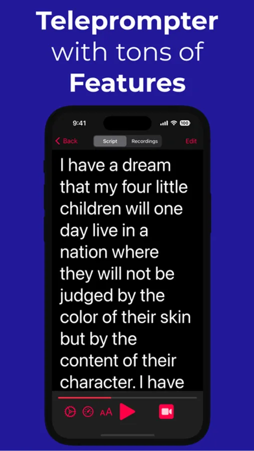 • Script Writing & Recording: Write your script directly in the app and record yourself as the text smoothly scrolls on your screen. Perfect your timing and delivery without the need to memorize everything.