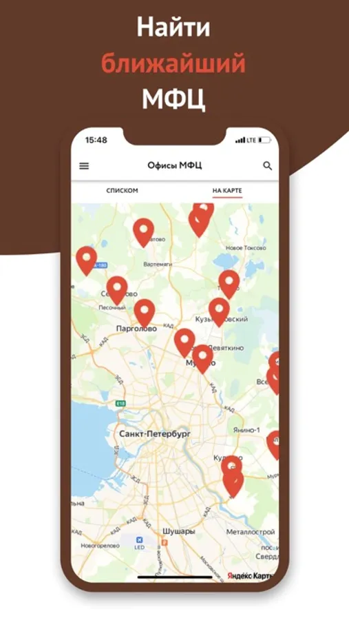 - просмотр расположения МФЦ на карте;