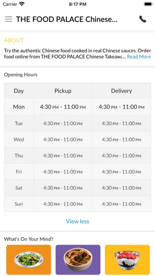 Order food online from THE FOOD PALACE Chinese Takeaway! It's so easy to use fast and convenient. Try our new online app which contains our entire takeaway menu. THE FOOD PALACE Chinese Takeaway is located in Thornaby.