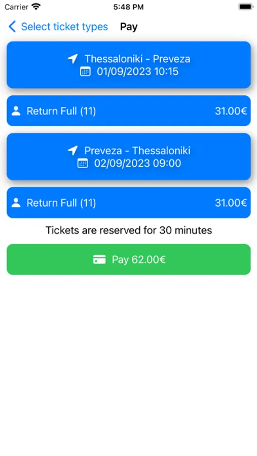 Electronic tickets booking for KTEL Prevezas (https://eticket.ktelprevezas.gr/)