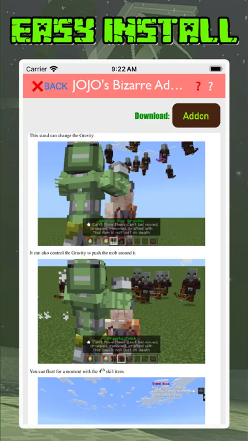 Installing the mods is very easy, you simply select the mod you want and download it, then select MCPE and the mod file will be imported automatically.